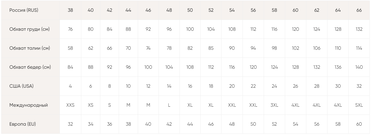 Размерный ряд: ......... 38, 40, 42, 44, 46, 48, 50, 52